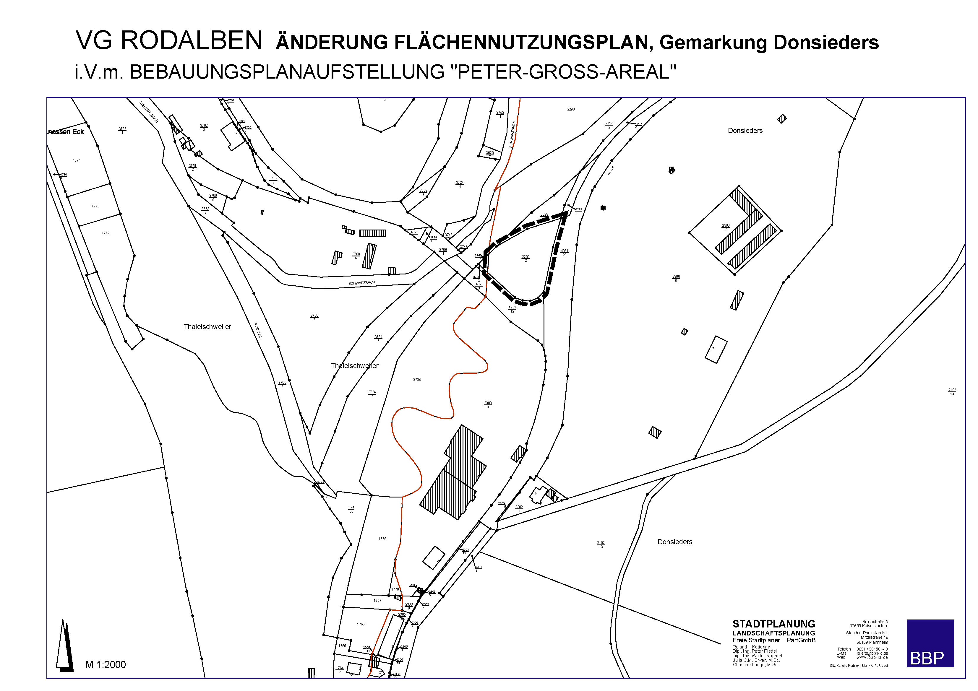 Der vorliegende Beschluss betrifft die Teiländerung des Flächennutzungsplanes der Verbandsgemeinde Rodalben für den Bereich der Biebermühle in der Ortsgemeinde Donsieders. Das Plangebiet umfasst Grundstücksflächen im Bereich der L477 und der B270 gemäß Darstellung im beiliegenden Lageplan. Das Plangebiet hat eine Größe von ca. 2.703 m².