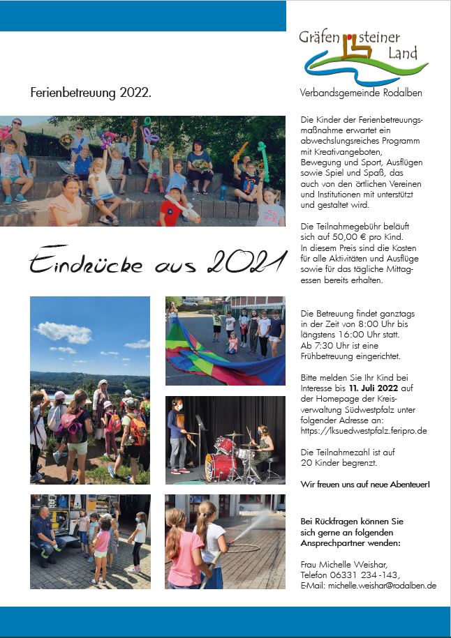 Ferienbetreuung in der Grundschule Rodalben in der Zeit vom 25.07.2022 bis 29.07.2022